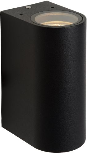 Kinkiet zewnętrzny o podwójnym źródle światła składający się z aluminiowej strukturyw kolorze czarnym.Ten kinkiet emituje przyjemne światło w górę i w dół, idealne do oświetlenia fasady domu.Żarówki : 2x35W GU10 (brak w zestawie).